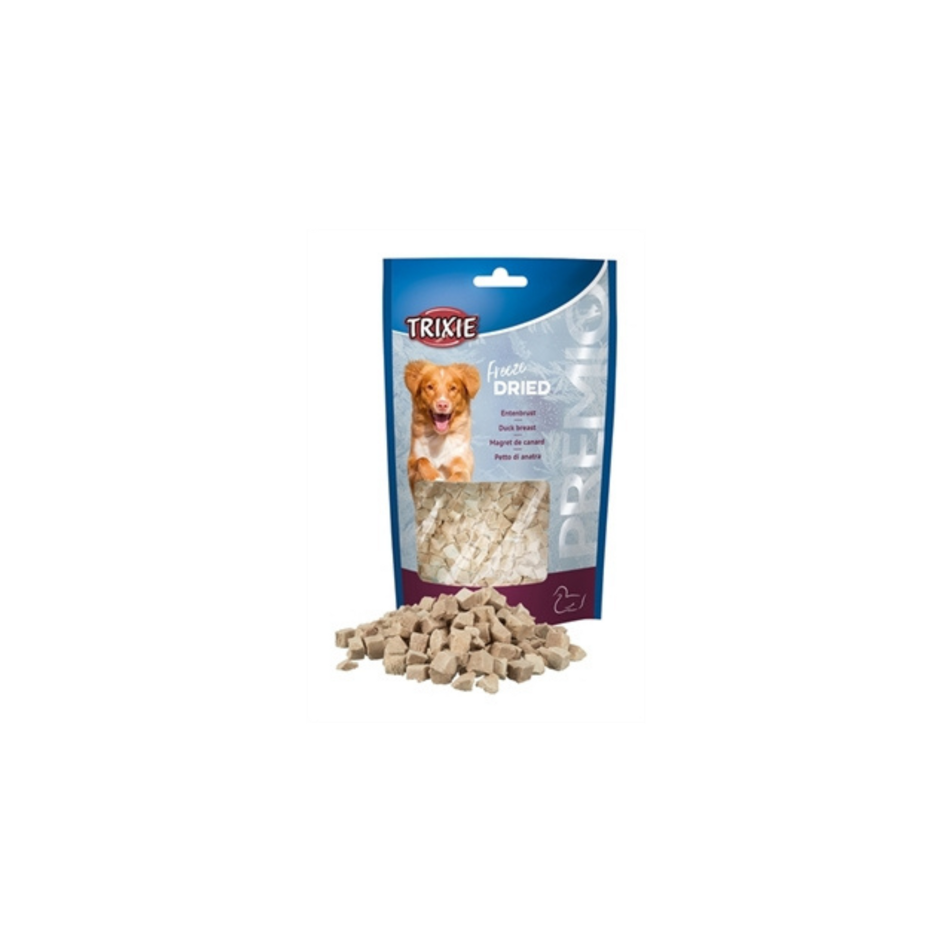 Trixie freeze dried eendenborst is aanvullende dierenvoeding voor honden.