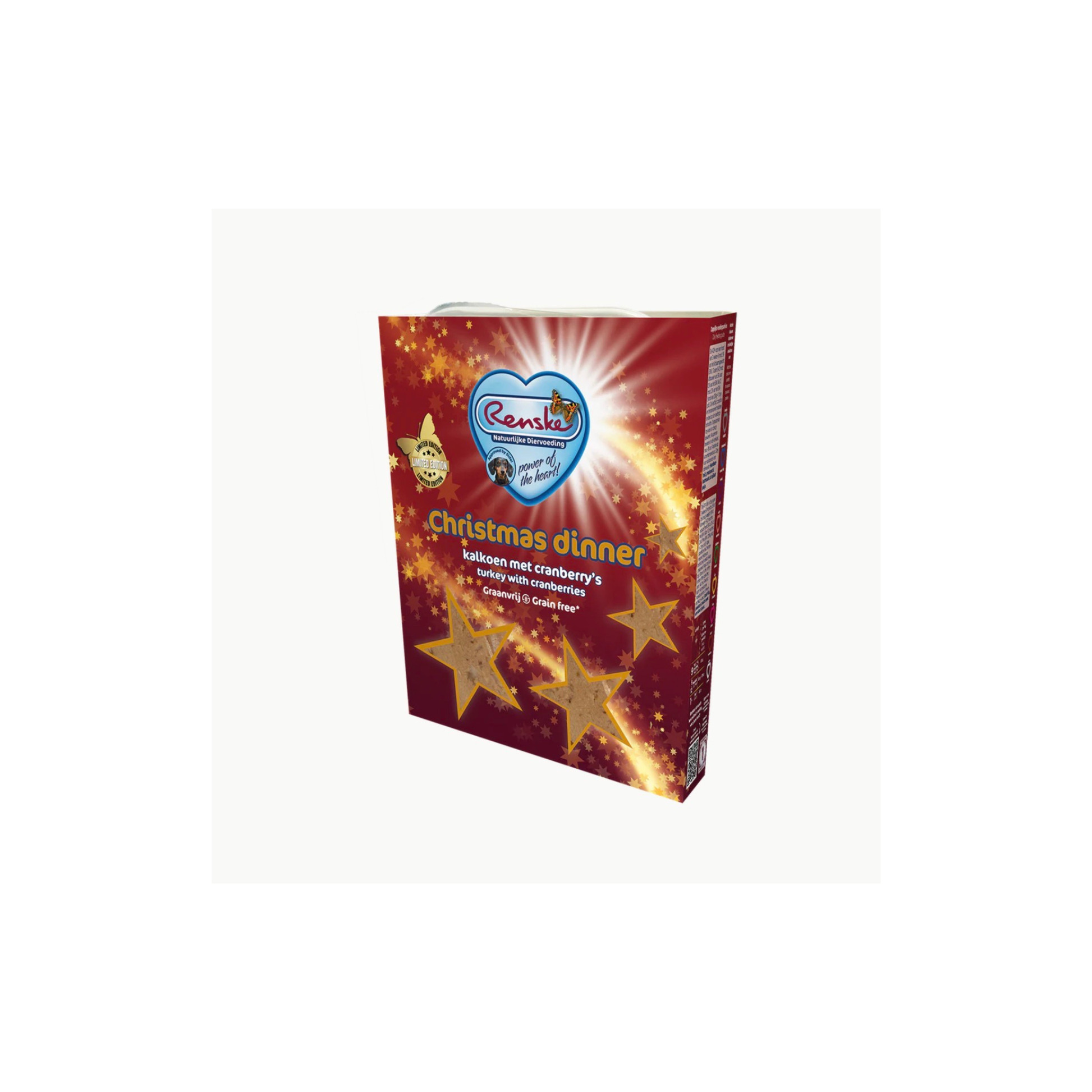 Renske Vers Gestoomde Vlees Maaltijd Kerstdiner is een maaltijd voor jonge en volwassen honden van alle rassen vanaf 9 weken.