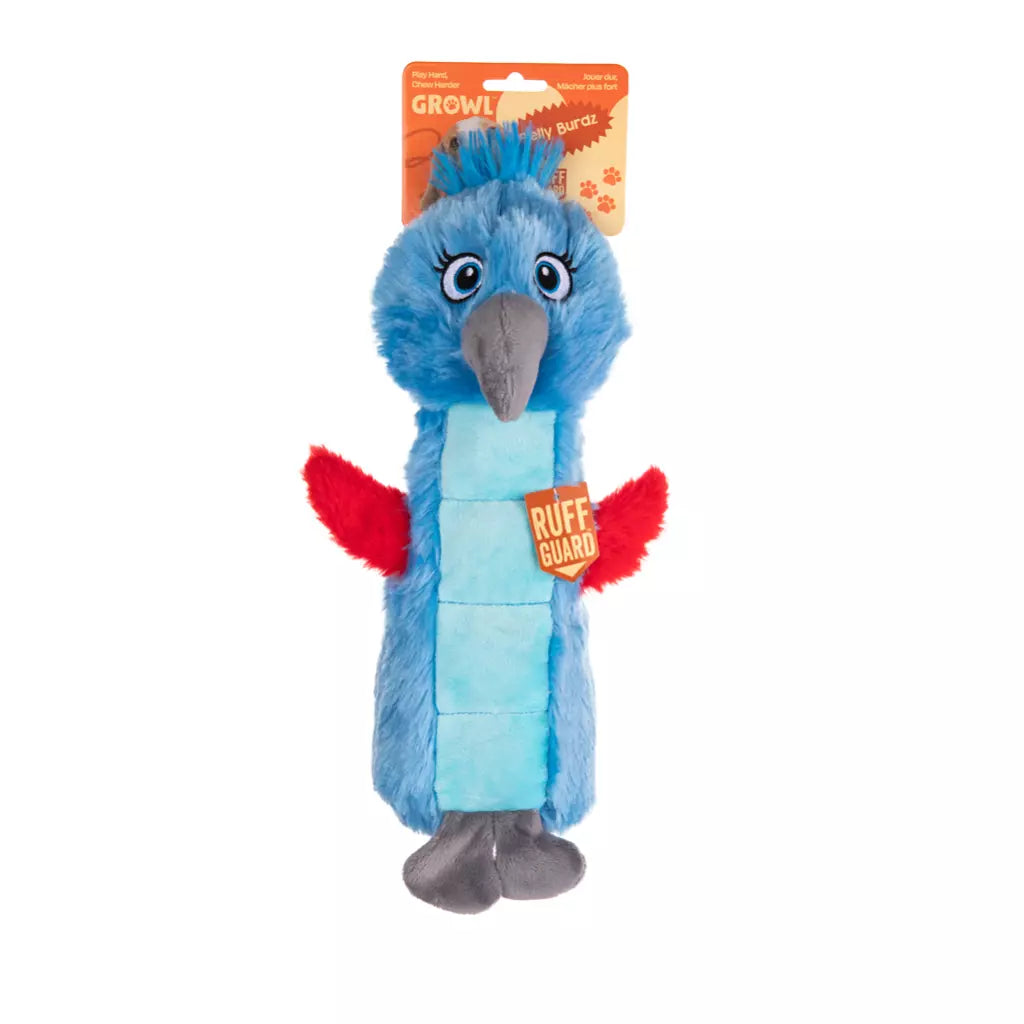 De Growl Belly Burdz combineren luxueus pluche met een stevige constructie en een speels design. Elk Belly Burdz-speeltje heeft een groot extern piepmatje en een extra grote pieper binnenin, waardoor het speelgoed uitdagend blijft en zorgt voor een rijke, interactieve speelervaring.