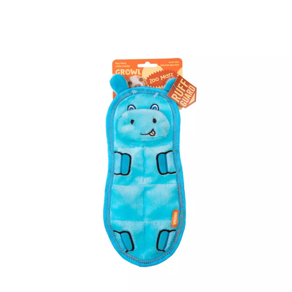 De Growl Zoo Matz zijn platte, dierenthema-speeltjes die ideaal zijn om te floppen, gooien en rond te dragen. Elk speeltje bevat zeven piepers voor langdurige interactie en speelplezier en is ontworpen met het speelse karakter van dierenthema’s in gedachten.